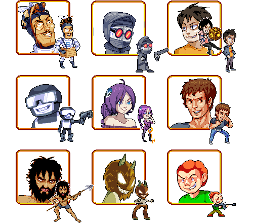 sprite sheets and game screens for "Super Newgrounds Hyper Fighter II" (a mockup made for the Pico Day 2016 on Newgrounds)